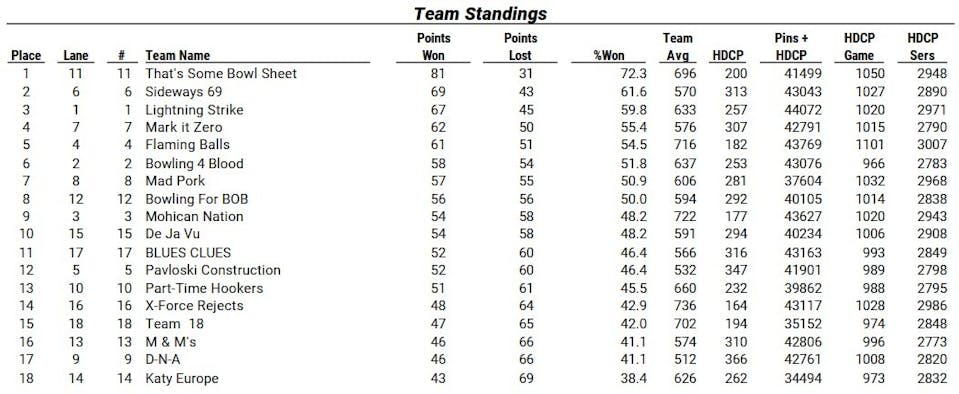 Standings