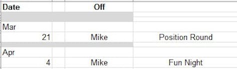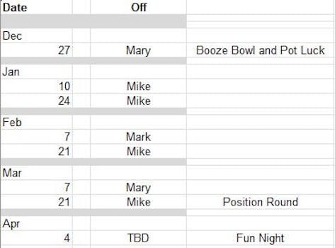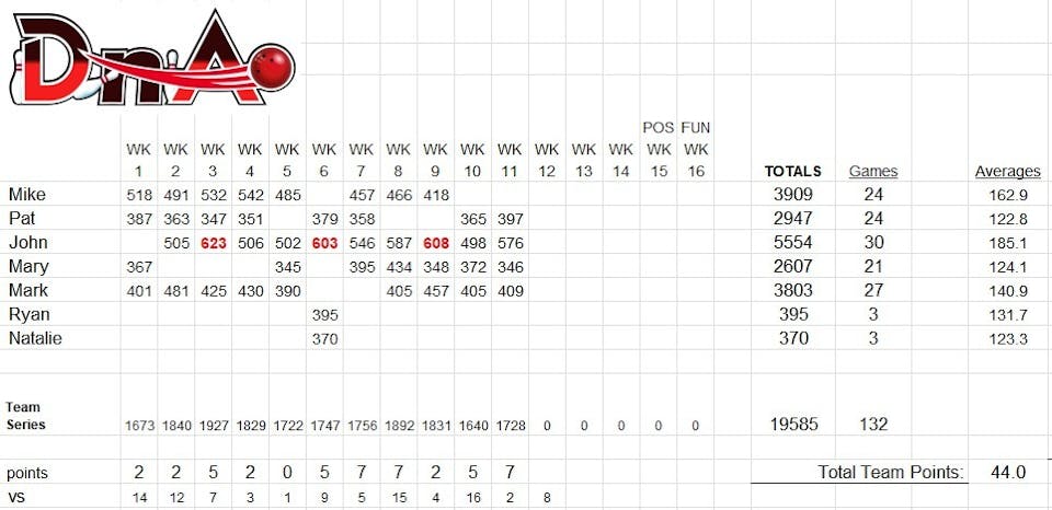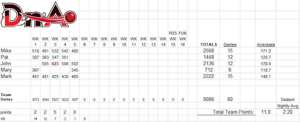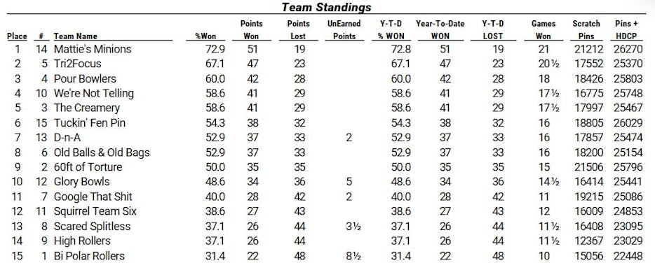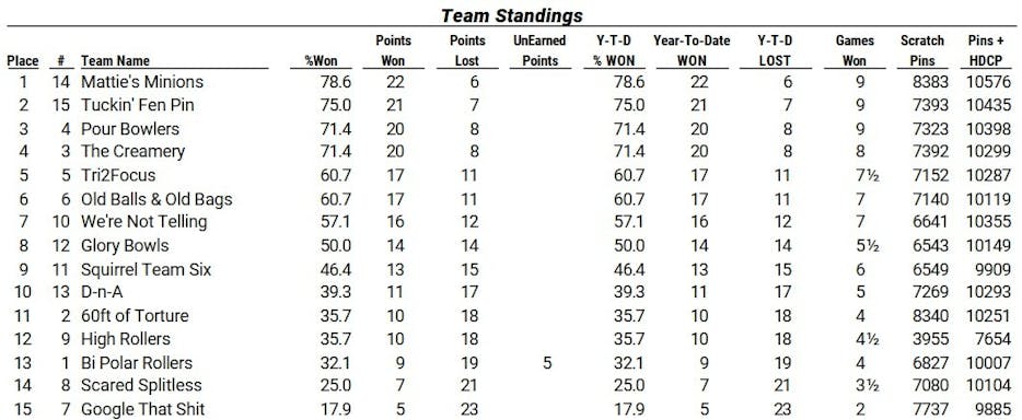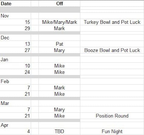 Bowling Schedule