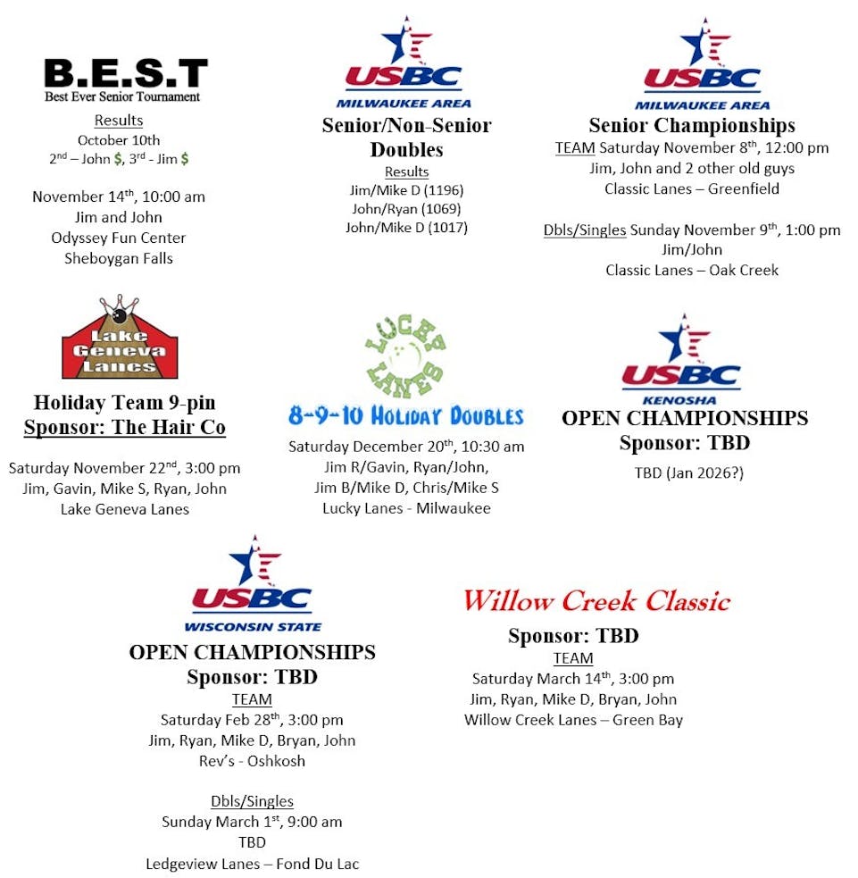 The 2025 - 2026 Tournament Schedule